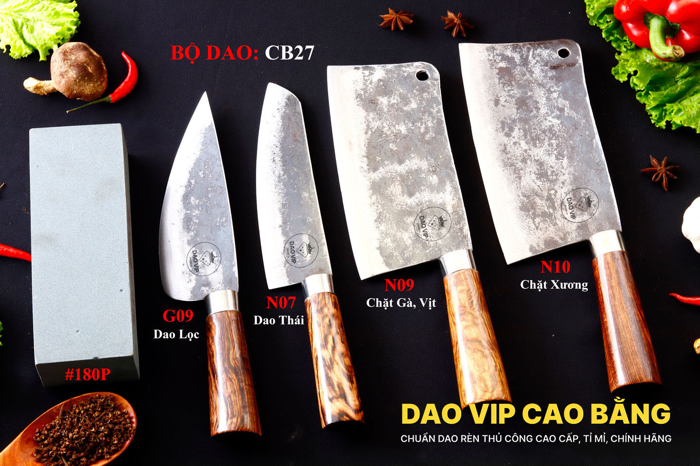 - - DAO VIP CAO BẰNG, Là thương hiệu rèn các loại dao bếp, dao đi rừng công cụ và nông cụ cầm tay nổi tiếng.