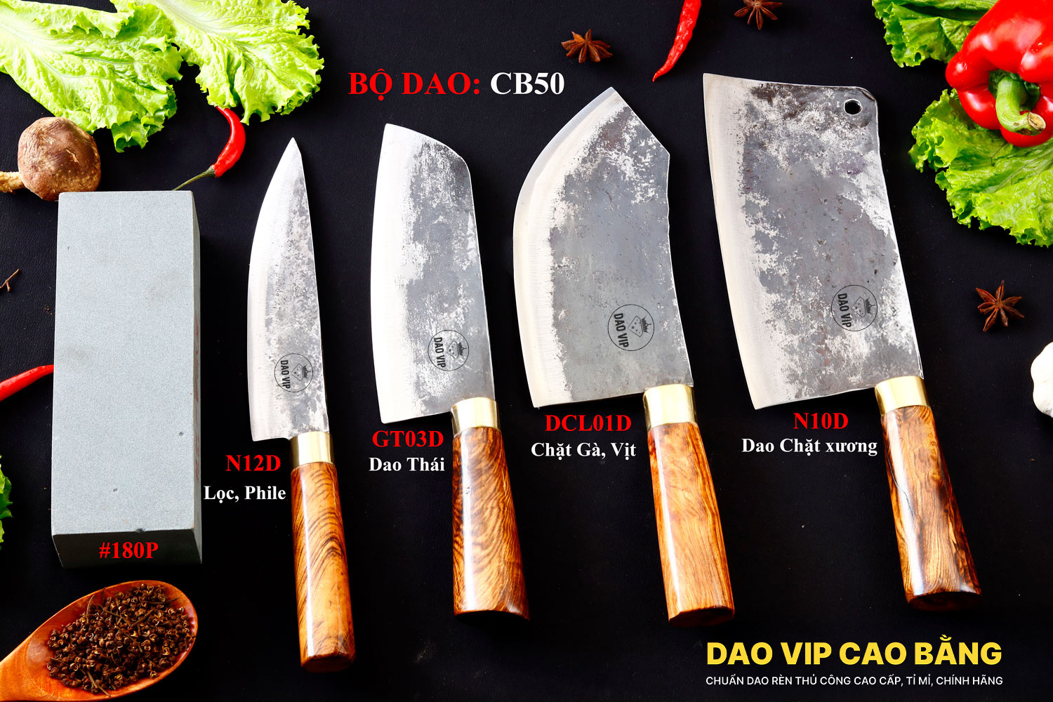 BỘ DAO BẾP CB50 cán cẩm khâu đồng là một combo sản phẩm của DAO VIP CAO BẰNG hàng chuẩn dao rèn truyền thống Cao Bằng, tỉ mỉ, cao cấp, chính hãng!