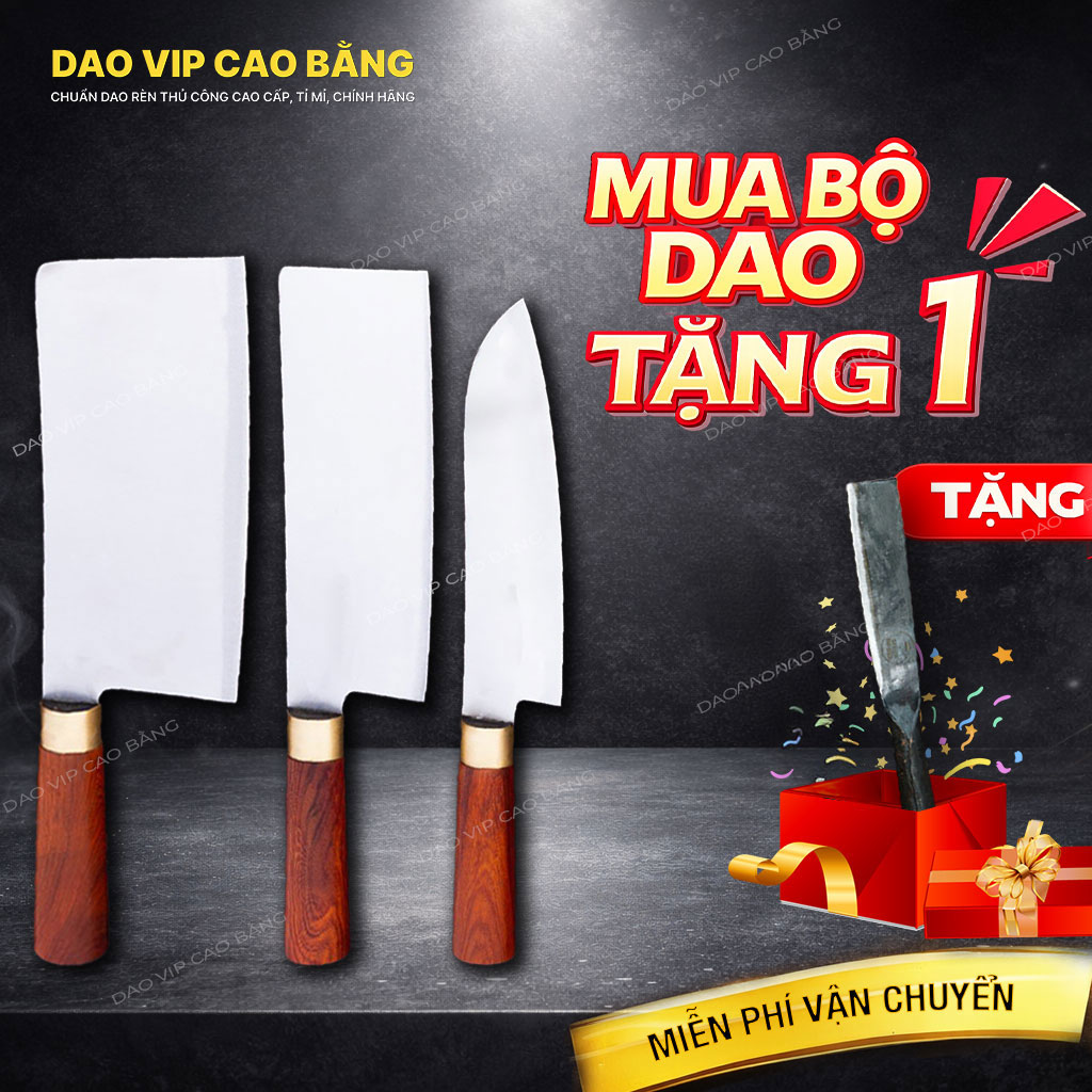 Bộ dao làm bếp CB89H rèn thủ công thép trắng đánh bóng tráng gương sắc bén an toàn vệ sinh thực phẩm hàng chuẩn Dao Vip Cao Bằng