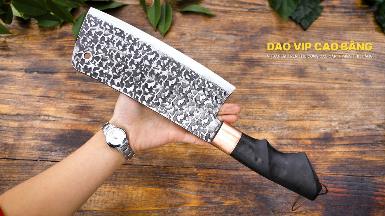 Dao chặt gà CG04T rèn thủ công từ thép nhíp dập hoa văn, sắc bén, bền bỉ,chặt nhanh vông vắn hàng chuẩn Dao Vip Cao Bằng
