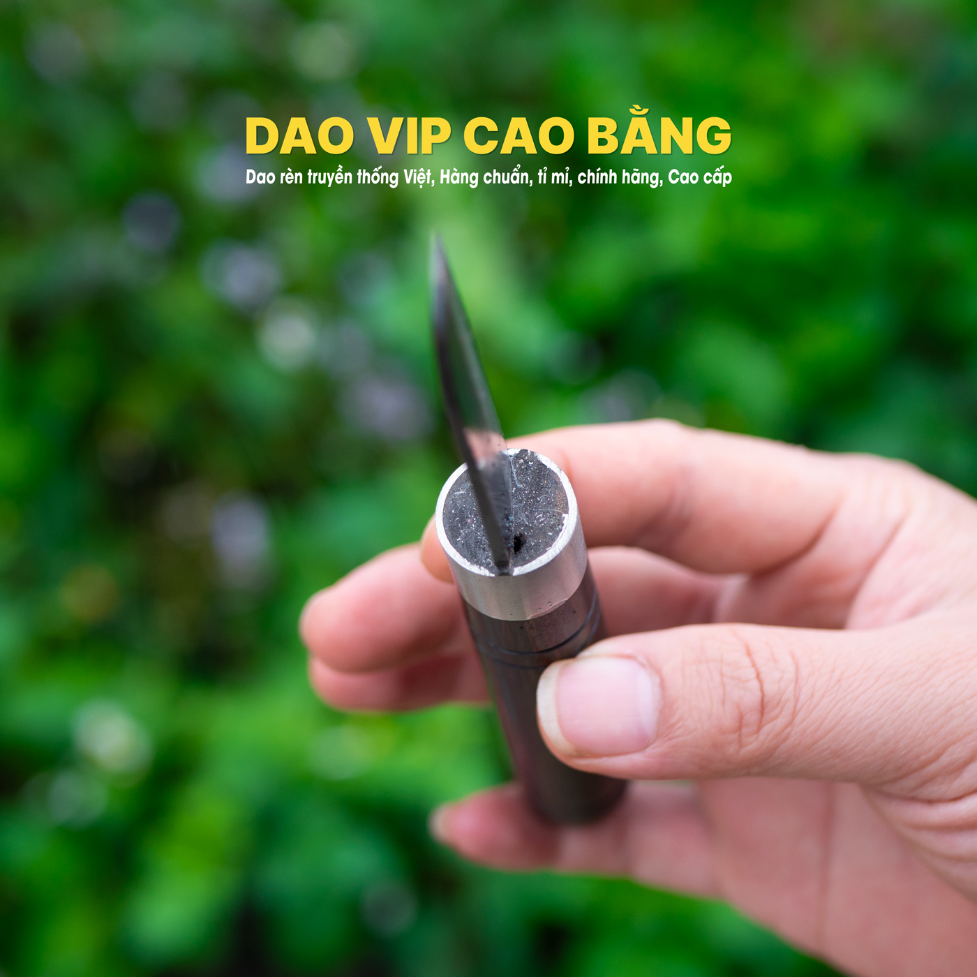 Sản phẩm được rèn thủ công từ thép nhíp xe ô tô, một loại thép nổi bật với độ cứng, đàn hồi, sắc bén và có khả năng giữ sắc lâu. Từ khâu chọn vật liệu, rèn, tôi thép, mài dũa cho đến khâu hoàn thiện cán dao đều được các thợ rèn giỏi tại DAO VIP CAO BẰNG thực hiện một cách cẩn thận, chính xác.