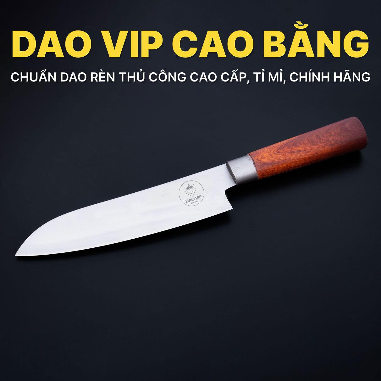 Cán dao được Dao Vip Cao Bằng tuyển chọn kĩ, cẩn thận chuyên dùng các loại gỗ làm đồ thủ công mỹ nghệ, ít cong vênh, vân đẹp, thớ gỗ mịn, được xử lý tỉ mỉ, mài bo góc, mài mịn mọi góc cạnh bền mặt cán, cán còn được phủ bóng phun sơn tăng tính thẩm mỹ, hạn chế thấm nước trong môi trường ẩm ướt, cán thiết kế ovan ôm sát lòng bàn tay tạo cảm giác thoải mái khi sử dụng lâu.