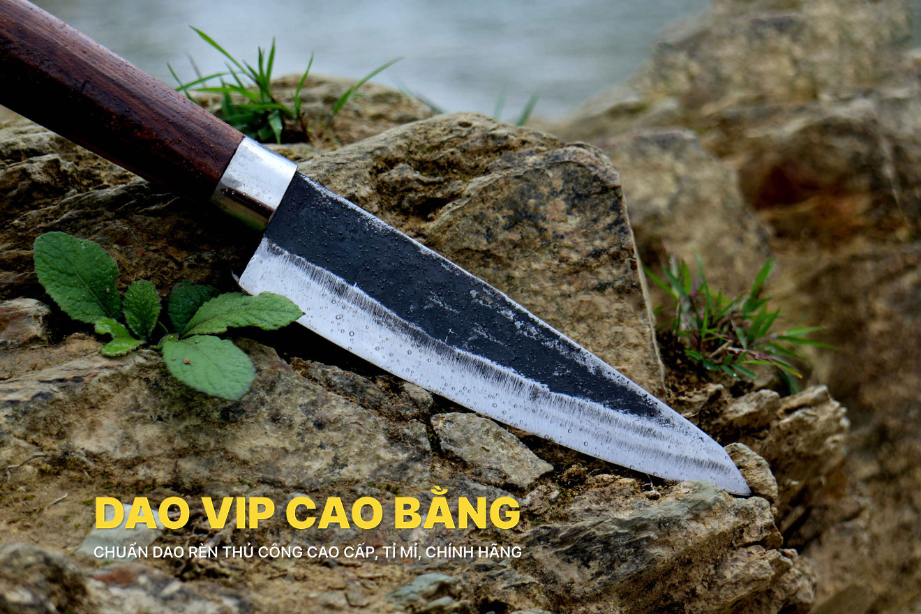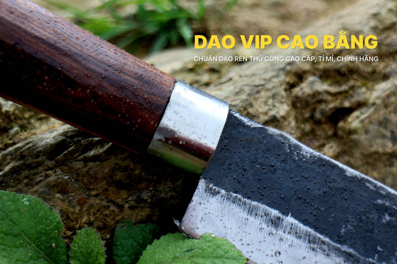 Sản phẩm được rèn tại DAO VIP CAO BẰNG đơn vị chuyên rèn thủ công dao bếp, dao đi rừng, nông cụ. Thương hiệu đạt giải thưởng "sản phẩm thủ công mỹ nghệ làng nghề tiêu biểu năm 2018” của Hiệp hội làng nghề Việt Nam phong tặng.