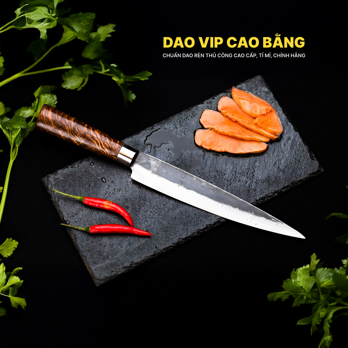 Sản phẩm dao phile N14 được rèn tại DAO VIP CAO BẰNG chuyên rèn thủ công dao bếp, dao đi rừng, nông cụ. Thương hiệu đạt giải thưởng "sản phẩm thủ công mỹ nghệ làng nghề tiêu biểu năm 2018” của Hiệp hội làng nghề Việt Nam phong tặng.