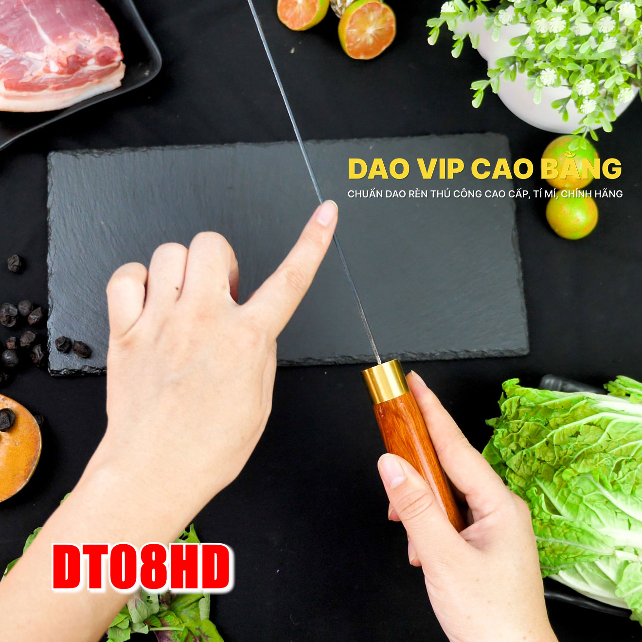 Dao thái thịt DT08HD - Một em dao thái sắc bén, bền bỉ, chất lượng tốt hàng chuẩn DAO VIP CAO BẰNG việc thái thịt,lọc cá,thái rau dễ dàng hơn bao giờ hết .Bữa cơm ngon hơn chị em phụ nữ chúng mình nấu ăn nhanh hơn- dễ dàng hơn-vui vẻ hơn!