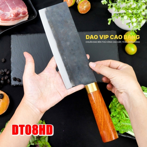 Dao thái thịt DT08HD rèn từ thép nhíp sắc bén, giữ sắc lâu dễ mài lại chuyên thái thịt, thái mịn, thái rau củ quả,... hàng chuẩn DAO VIP CAO BẰNG là lựa chọn phù hợp nhất dành cho người "đầu bếp giữ lửa yêu thương" .