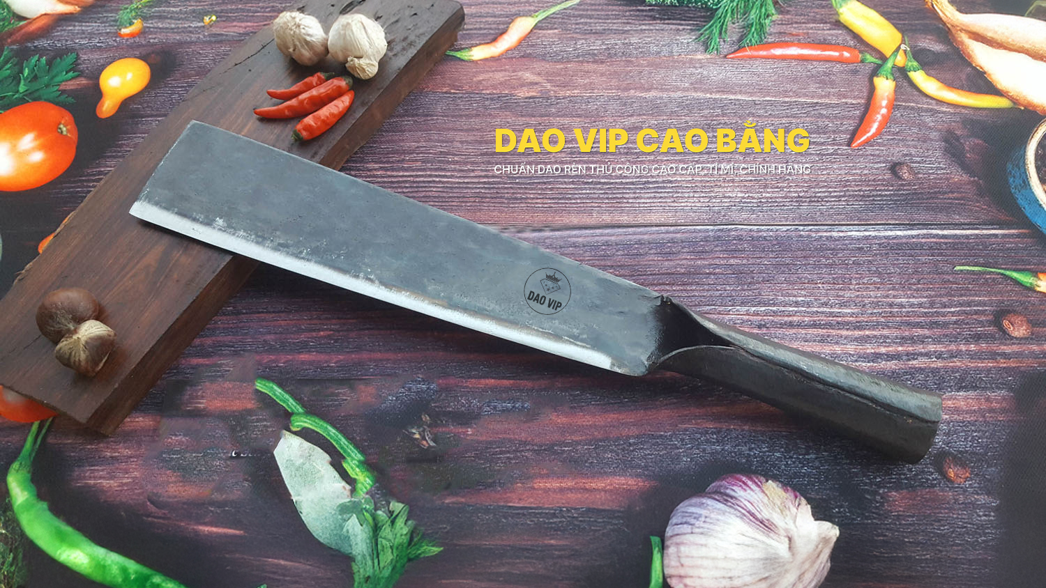 Sản phẩm được rèn tại DAO VIP CAO BẰNG đơn vị chuyên rèn thủ công dao bếp, dao đi rừng, nông cụ....Thương hiệu đạt giải thưởng " Sản phẩm thủ công mỹ nghệ làng nghề tiêu biểu năm 2018” của Hiệp hội làng nghề Việt Nam phong tặng.