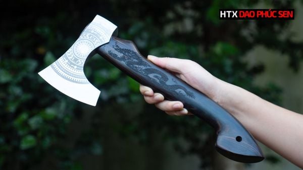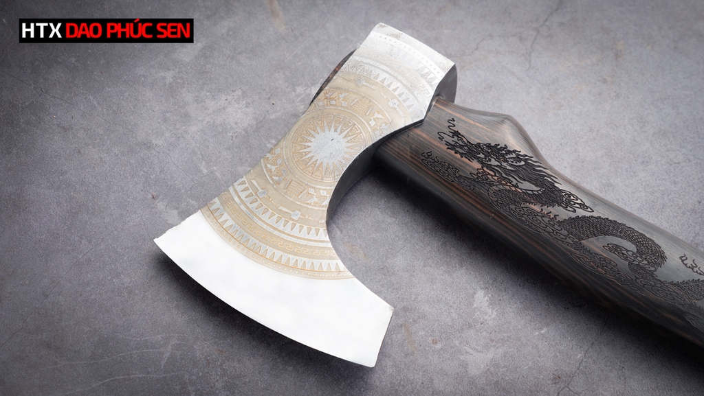 Rìu được khắc hoa văn trống đồng Đông Sơn mang ý nghĩa truyền thống văn hoá lâu đời của Việt Nam. Cán rìu được khắc hoa văn rồng mạnh mẽ mang tính ngưỡng trừ tà, phù hợp với các giá trị văn hóa tâm linh... Lưỡi rìu được rèn theo kiểu dáng hiện đại, màu trắng kết hợp với cán gỗ mun đen tinh tế. Hãy cùng chúng tôi tìm hiểu thêm về sản phẩm ngay sau đây!